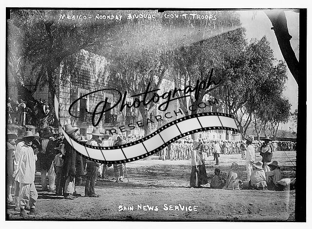 Mexico Noonday bivouac,government troops,Bain News Service,sombreros
