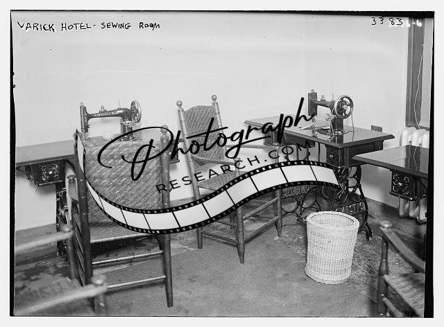 Varick Hotel - Sewing room,tables,chairs,sewing machines,waste basket