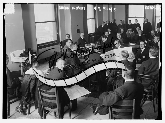 Bread Inquiry,N.Y.,February 16,1915,New York,men,woman,newspapers,Bain News