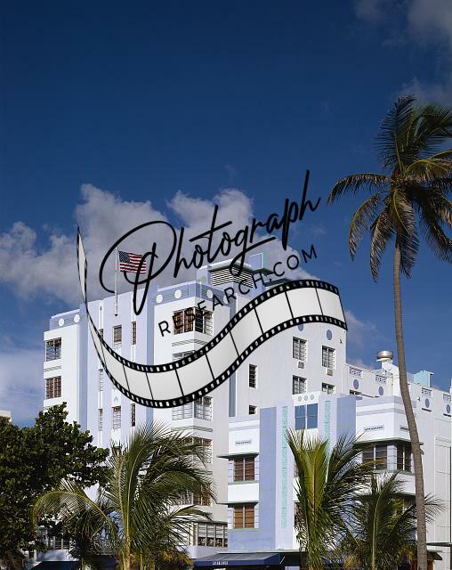 Art Deco,Miami Beach,Florida,FL,Palm Trees,American Flag,Carol Highsmith