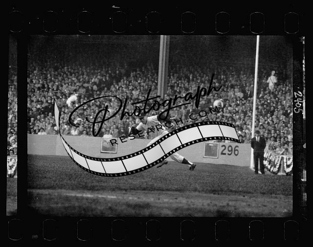 Mickey Mantle, of the New York Yankees, running between bases during the 1956 World Series