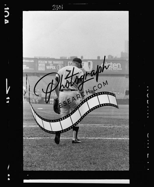 Rear view of Mickey Mantle, of the New York Yankees, walking on field during a game