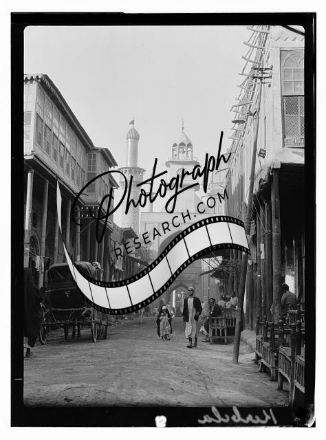 Title: [Iraq. (Mesopotamia). Baghdad. Views, street scenes, and types. Street scene with Midan mosque in distance]