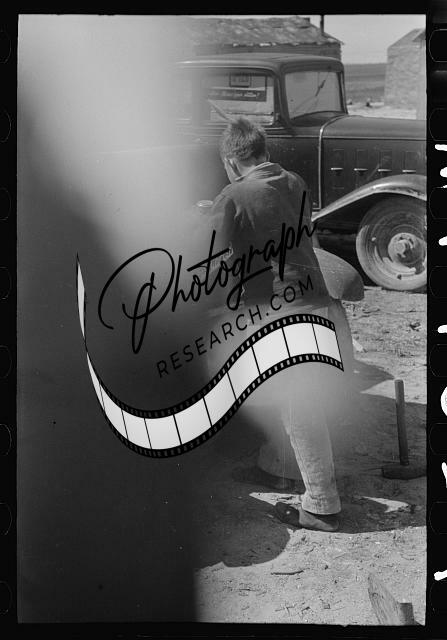 Migrant auto wrecker at work dismantling car,Corpus Christi,Texas,TX,FSA,1939,1