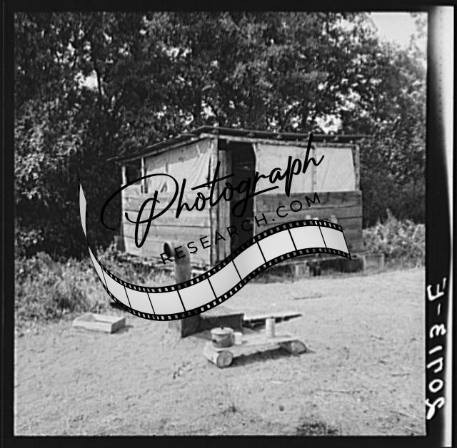 Title: Oregon, Josephine County, near Grants Pass. One room per family in rough wooden barracks on grower's property. No running water in camp. Hop ranch