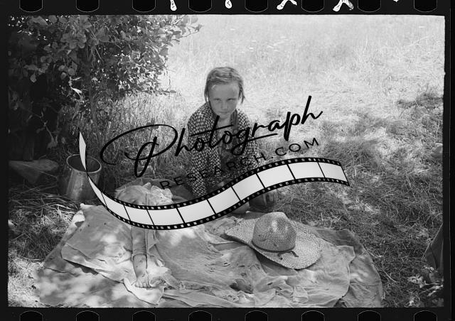 Title: Child of family encamped in the open after leaving the Arkansas River bottoms because of hordes of mosquitoes. This camp was near Spiro, Oklahoma