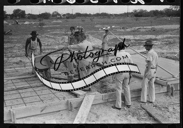 Title: Fitting water pipe at migrant camp under construction at Sinton, Texas