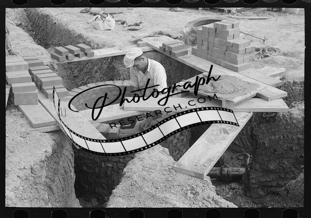 Title: Pouring concrete at migrant camp under construction at Sinton, Texas