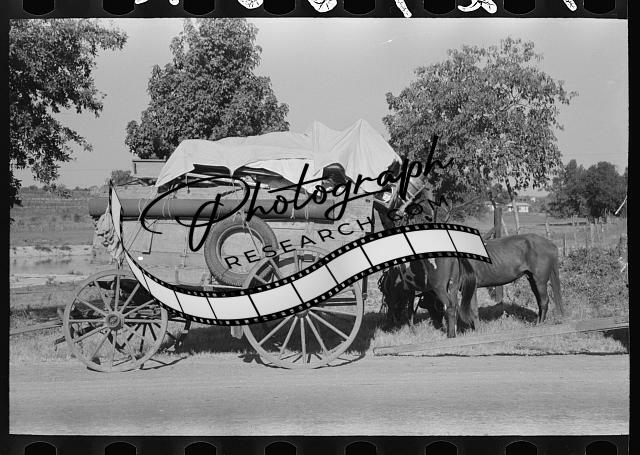 Farmer moving in wagon from farm to a new farm,along roadside,Smith County,Texas