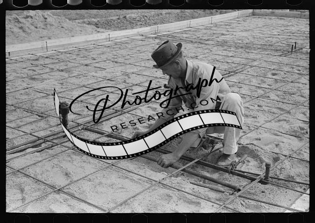 Title: Activity around concrete mixer at migrant camp under construction at Sinton, Texas
