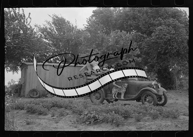 Title: Migrant's car stopped along the road, with part of migrant family in rear seat of truck, under a tree to await the rain's passing, near Muskogee, Oklahoma