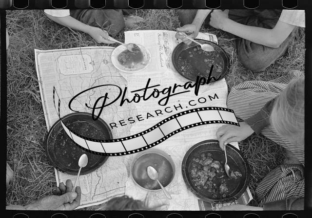Migrant family eating lunch,east of Fort Gibson,Muskogee County,Oklahoma,OK,7