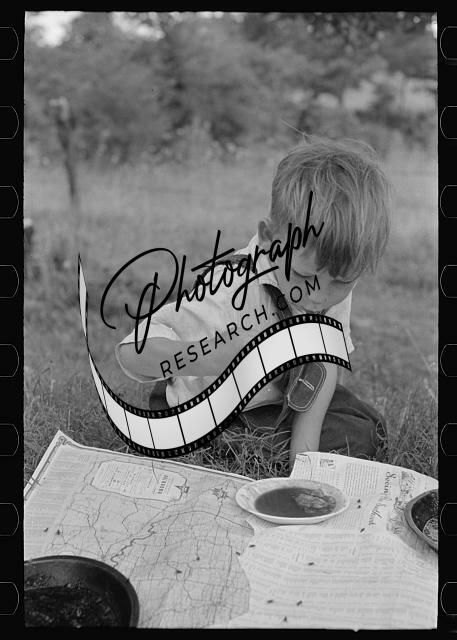 Migrant family eating lunch,east of Fort Gibson,Muskogee County,Oklahoma,OK,7