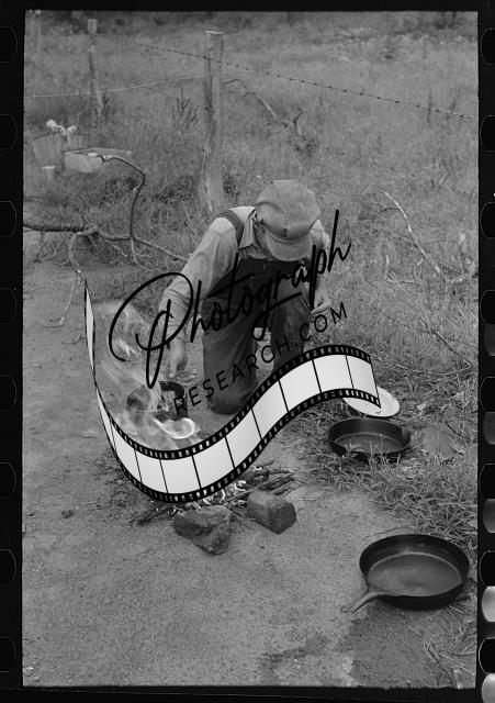 Title: Making lunch along the roadside, near Henrietta [i.e., Henryetta,] Oklahoma. This is a migrant family en route to California