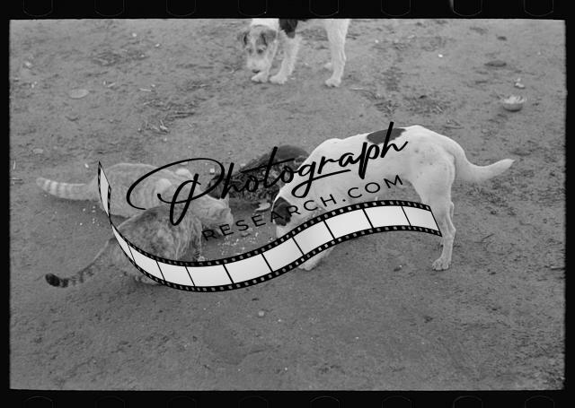 Dogs,cats eating together. Farm scene near Weslaco,Texas,Hidalgo County,FSA