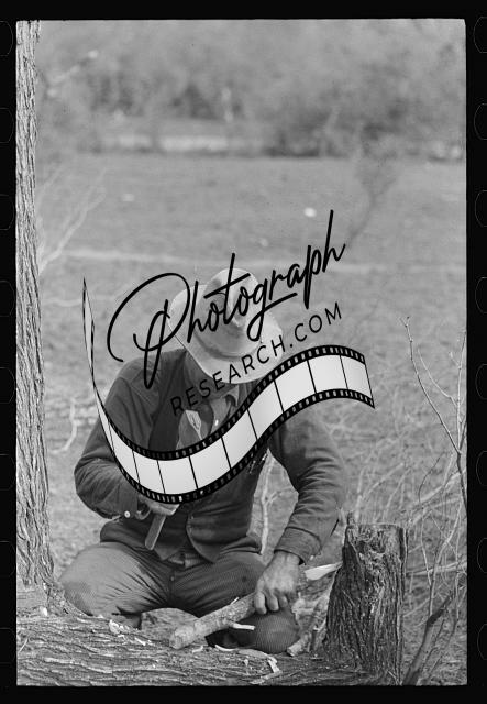 Title: White migrant worker sitting in front of fire. He lived with two other white men migrant workers. He was a Texan. Harlingen, Texas