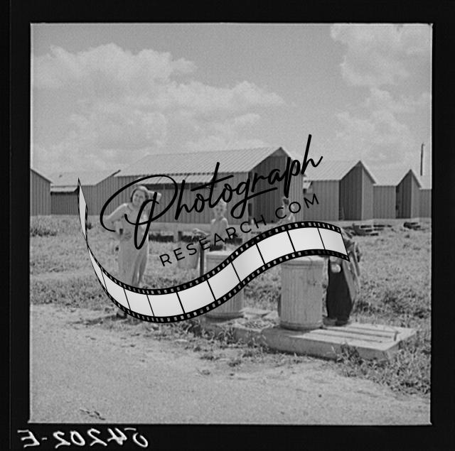Title: Carrying water which is easily available at head of each shelter unit at Osceola migratory labor camp. Belle Glade, Florida