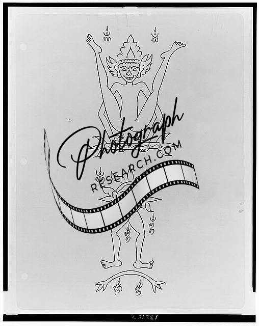 Two stylized figures and the ongkara symbol, possibly used as amulets against witches