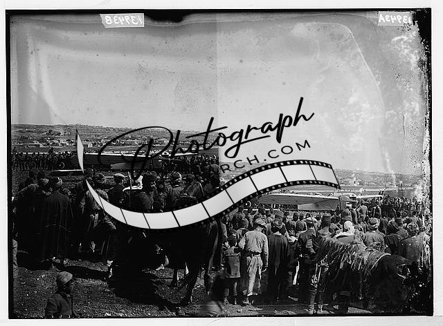 Crowd around Turkish military biplane,Jerusalem,Israel,Middle East,May 1914