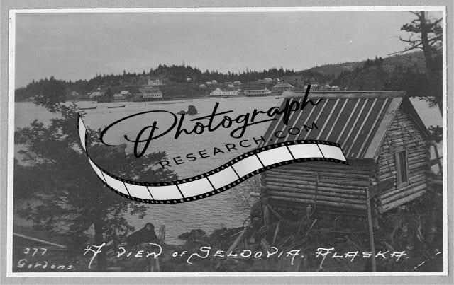 View of Seldovia across water,Alaska,AK,Waterfront,Log Cabin,1900-1930