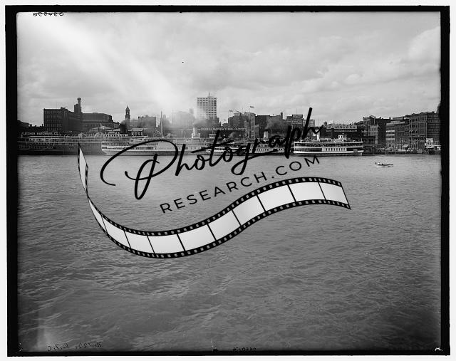 Boats,dock,piers,wharves,steamers,ships,buildings,water,Detroit,Michigan,MI,1890
