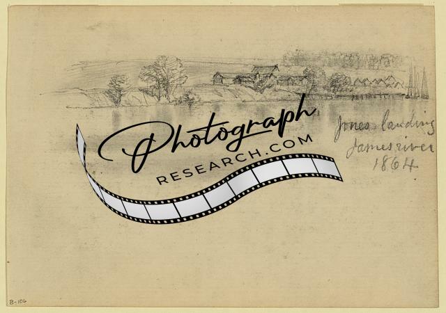 Inscribed below first image: Bridge-James river 1864. Inscribed above image: Butler's lookout.
