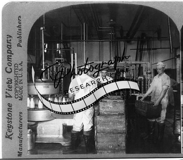 Automatic Machine for Filling & Capping Bottles of Milk,Dairy,Men Working,c1906