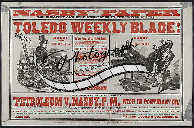 Photo of Advertisement,Nasby's Paper,1868,Toledo Weekly Blade,Postmaster