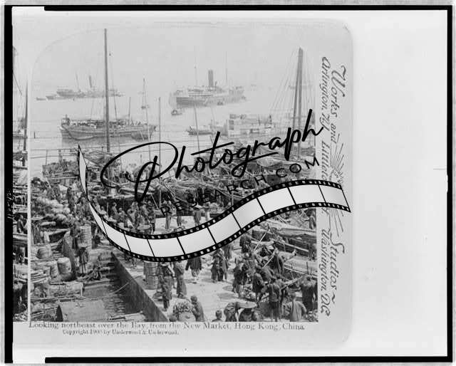 Looking northeast over Bay,New Market,Hong Kong,China,c1900,Pier,Boats