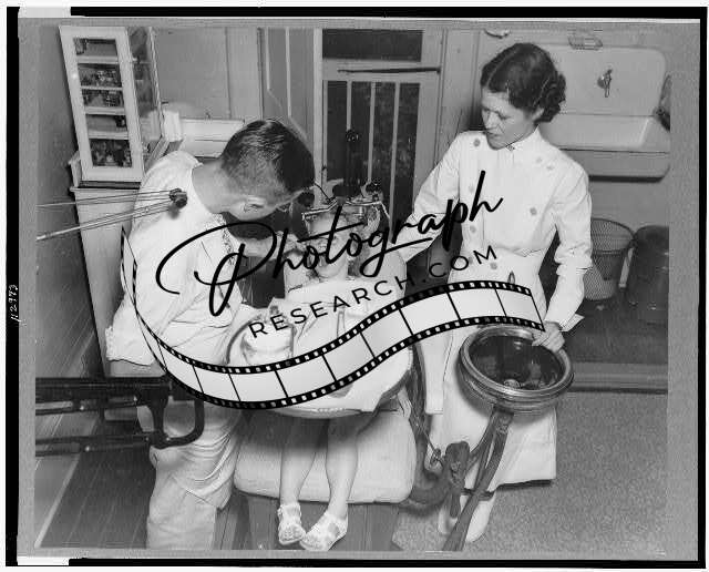 Dentist examining a child's teeth,New Orleans,Louisiana,LA,c1942,Nurse,Health
