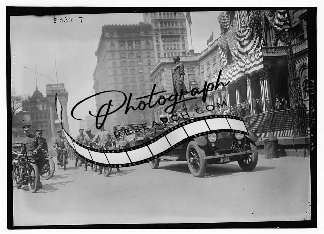 Lafayette Day,parades,ceremonies,automobiles,cars,streets,motorcycles,men,1919