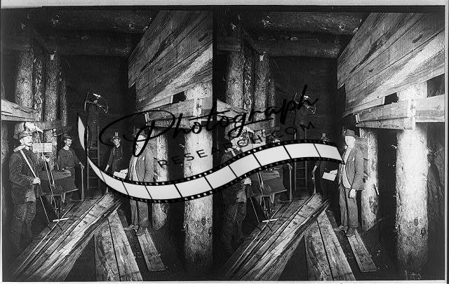 Miners pose in coal mine,c1906,Mine Shaft,Pickaxe,Ladder,Dirt Wall