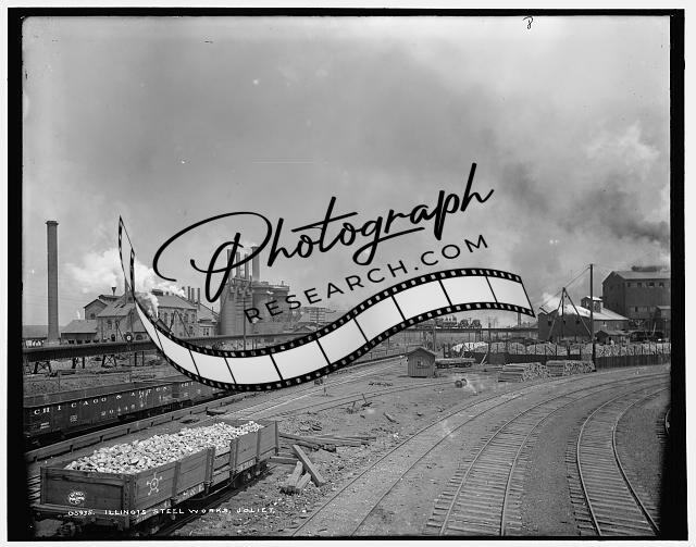 Illinois Steel Works,industry,shipping,railroad tracks,carts,Joliet,IL,1880