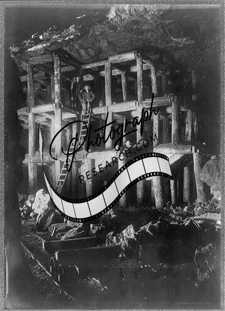 Miners pose in coal mine,c1906,Mine Shaft,Pickaxe,Ladder,Dirt Wall