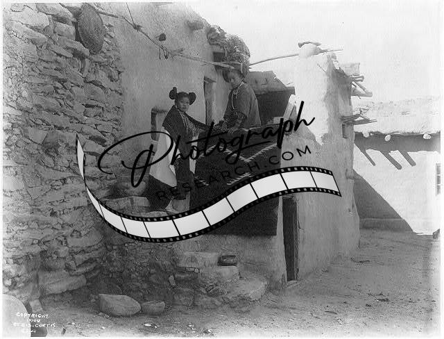 Tewa girls,c1900,Edward S. Curtis,Hopi Indians,pueblo building exterior,Arizona