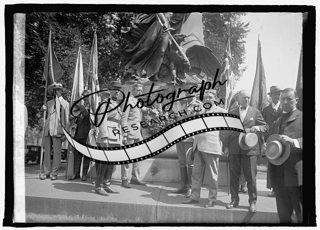 Dwight Davis with Sons of Revolution at Rochambeau statue,7/1/25,July 1925,1