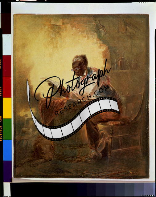 Black man reading newspaper by candlelight,c1863,Henry Louis Stephens,Domestic
