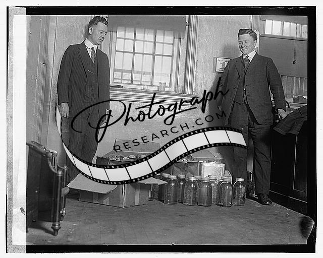 Two men in room with jars,2/2/23,Prohibition,Illegal Alcohol,Bootlegg Liquor