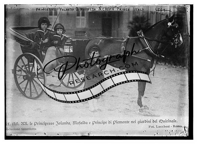 Princesses Yolanda,Mafalda in horse-drawn carriage,Crown Prince of Italy