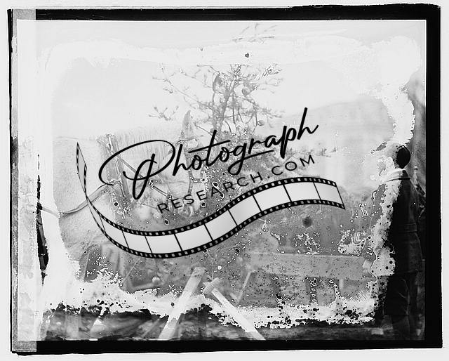 This glass negative might show streaks and other blemishes resulting from a natural deterioration in the original coatings.