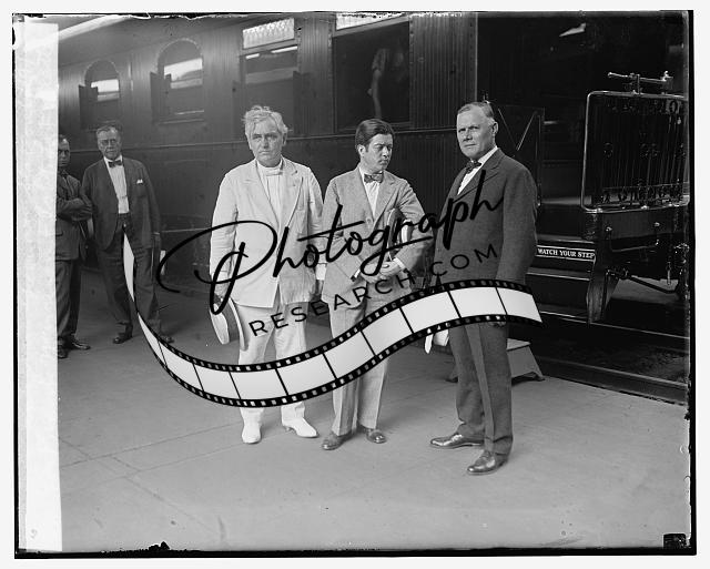 Frank Morrison,Robert La Follette,William Greene at station,6/19/25,June 1925