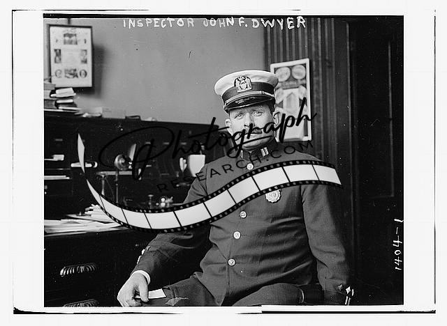 Inspector John F. Dwyer,seated at desk,wearing uniform,telephone,badge