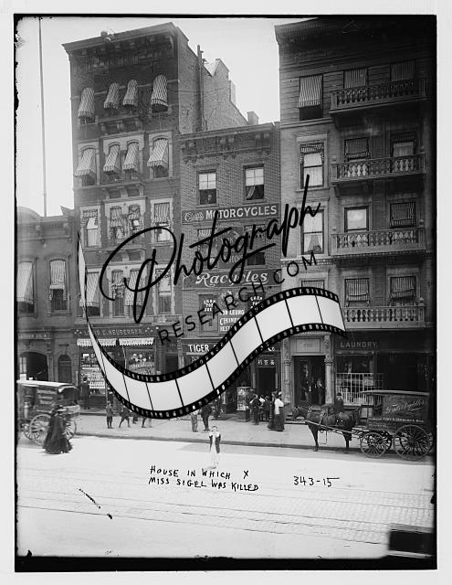 House in which Miss Elsie Sigel,1889-1909,was killed,New York City,NYC,Racycles