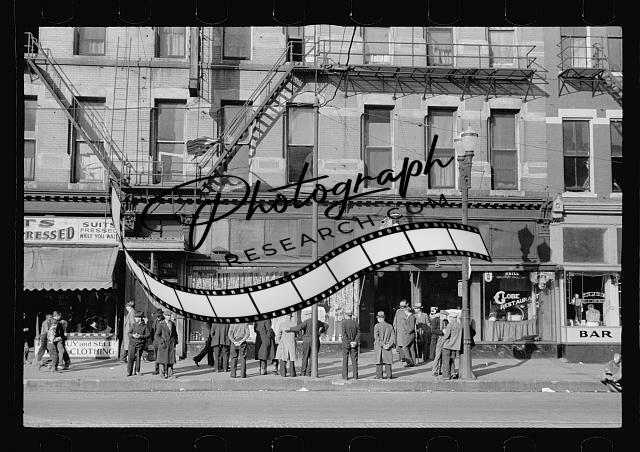 Lower Douglas Street,where unemployed hang out,Omaha,Nebraska,NE,1938,Vachon