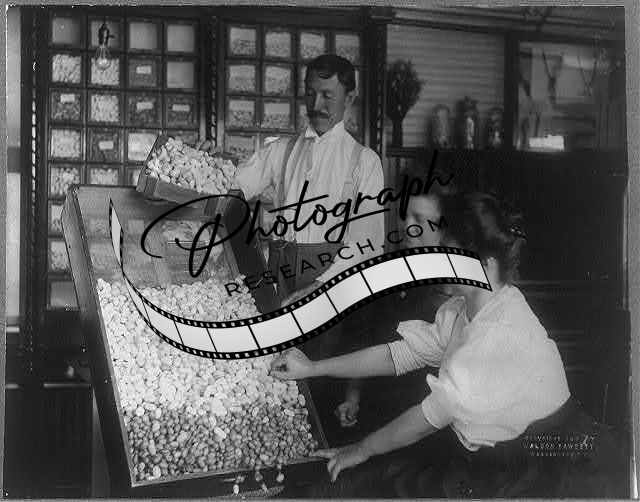 Tray of silk cocoons,c1907,2 women and a man,lightbulb
