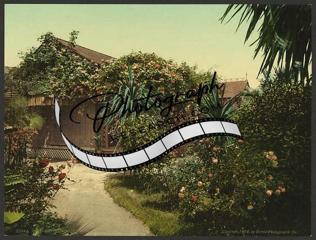 Rose-covered cottage,cabins,garden,Pasadena,CA,c1898