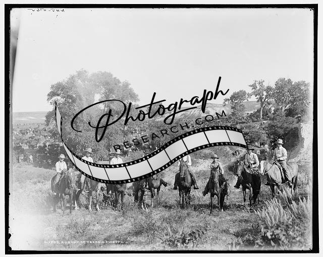 Group,Texas cowboys,horses,horseback riding,TX,Detroit Publishing Company,c1901