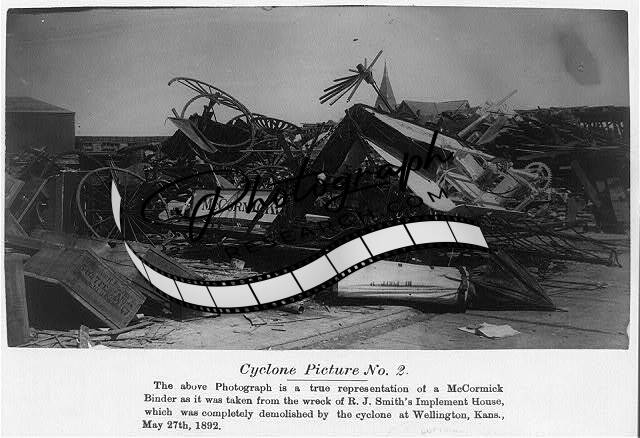 Cyclone Picture,McCormick Binder,Wreck,R.J. Smith's House,Wellington,Kansas,1892