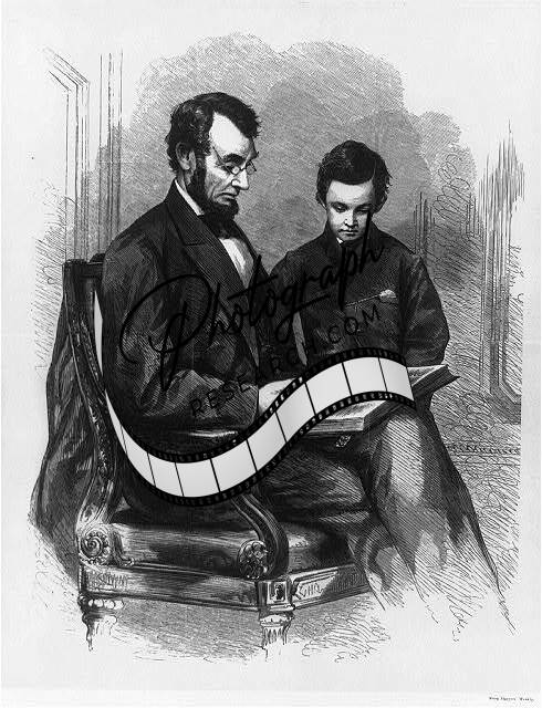 President Lincoln at home,holding album with his son,Tad,Abraham Lincoln,c1865