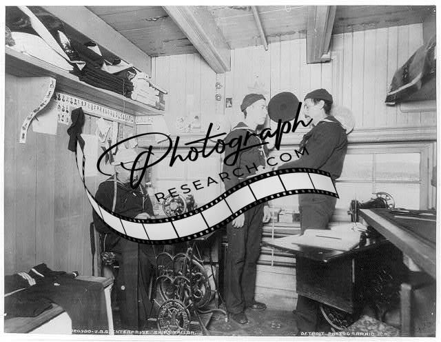 USS ENTERPRISE,ship,tailor,c1898,sewing machine,sailor